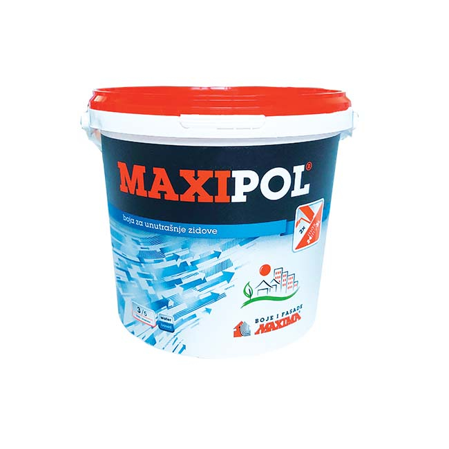 MAXIPOL je ekološka notranja zidna barva. Odlikujejo jo izrazita belina, odlična pokrivnost, paroprepustnost in odpornost na suho drgnjenje. Primerna je za barvanje vseh vrst suhih in trdih podlag: fino ometanih površin sten in stropov, betona, vlakno cementnih plošč in mavčno kartonskih plošč. Možno je niansiranje z MAXI Color ali MAXIFAS Color ter z MAXIMIX sistemom.